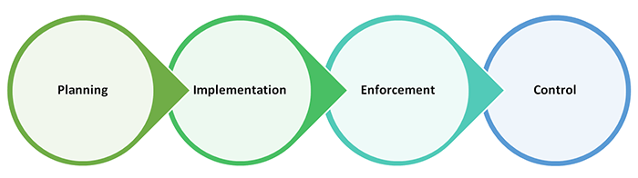 - Control: All processes in the organization are monitored and controlled to ensure they fully abide by the mandated standards.